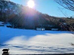 Our family has a unique tradition of putting menorahs in the windows on all sides of the house and then going outside and circling the house to see them glowing as we pass by. Over the years, we have done this in all kinds of weather–blizzards, pouring rain, and clear but often bitter cold starry nights. Sometimes, the ground is bare. Other times, it’s been a frozen mess, even more treacherous in the sloping backyard. It was so bad two nights ago that we went to get the hiking poles out of the car. And I wondered, now that I’m older and threatened with osteoporosis, whether my stubbornness in completing this mission had morphed into stupidity. But I did it anyway, hanging onto porch beams and tree branches and feeding my fantasies of being an intrepid explorer.